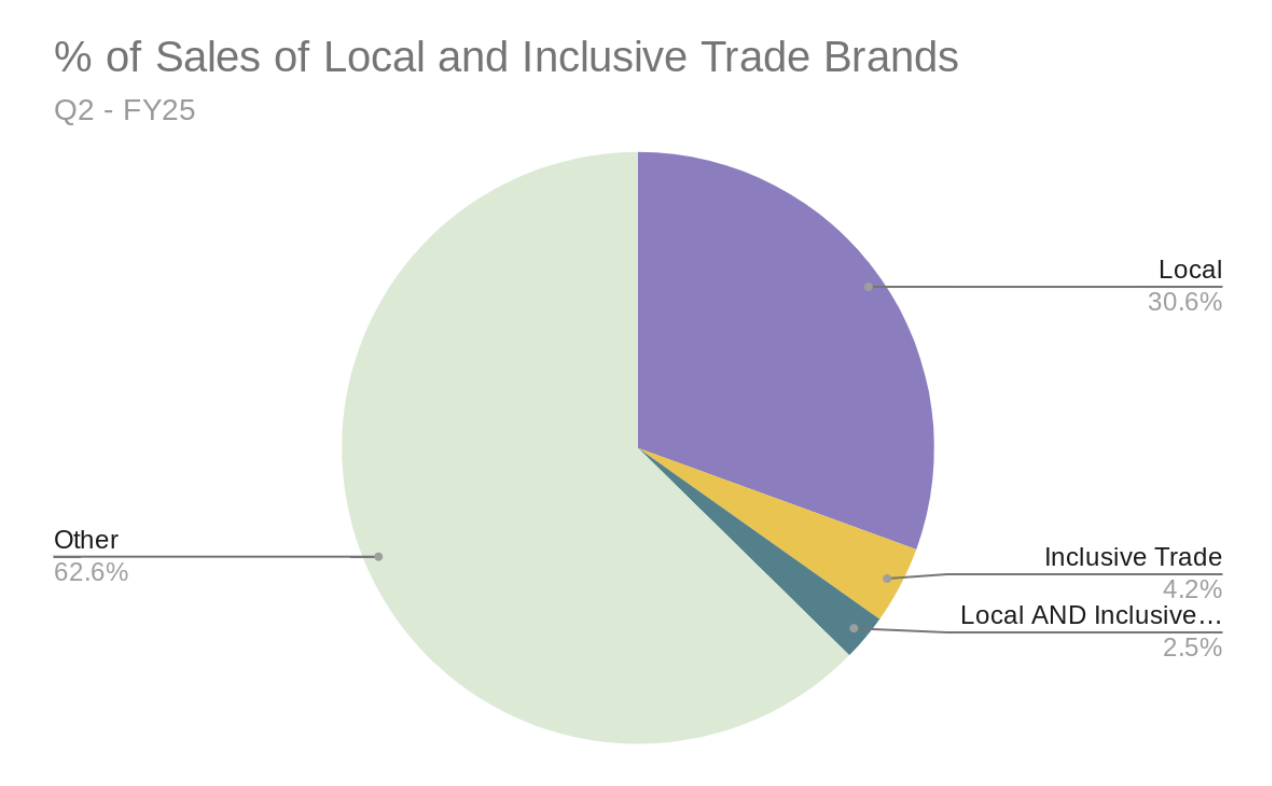 Our goal is to increase the sales of Local and Inclusive Trade products we carry. We’re planning to update this information annually.