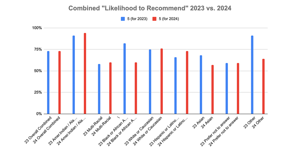 2024Q4 combined likelihood to recommend 2023 vs. 2024 chart