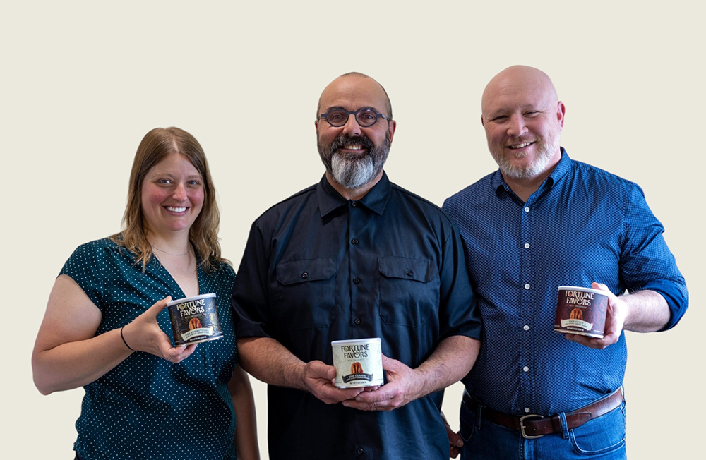 In a leap of faith, Eric left Epic as executive chef in 2021 to found Fortune Favors (originally called Nutkrack), with co-founder Jessica Benish. He went about the task with a humble and grateful Midwestern sensibility along with a healthy dose of nostalgia and humor. The pair opened a neighborhood pecan shop on Madison’s east side, which quickly gained a cult-following as people tasted the candied pecans.