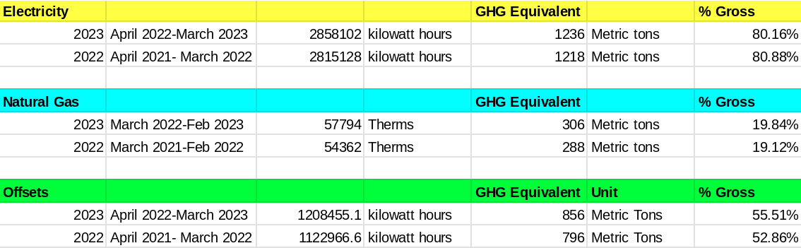 In recent years, we have seen progress in our emissions goals through the use of renewable energy and offsets. We are continuing to identify new projects and opportunities that will offset our energy use and carbon footprint even more while upgrading our operational infrastructure to use as little energy as possible. The chart at the top of this page outlines recent progress in reducing the Co-op’s carbon footprint.
