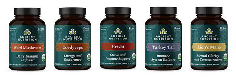 Ancient Nutrition Dr. Axe Formula Mushroom Supplements. All certified organic formulas!