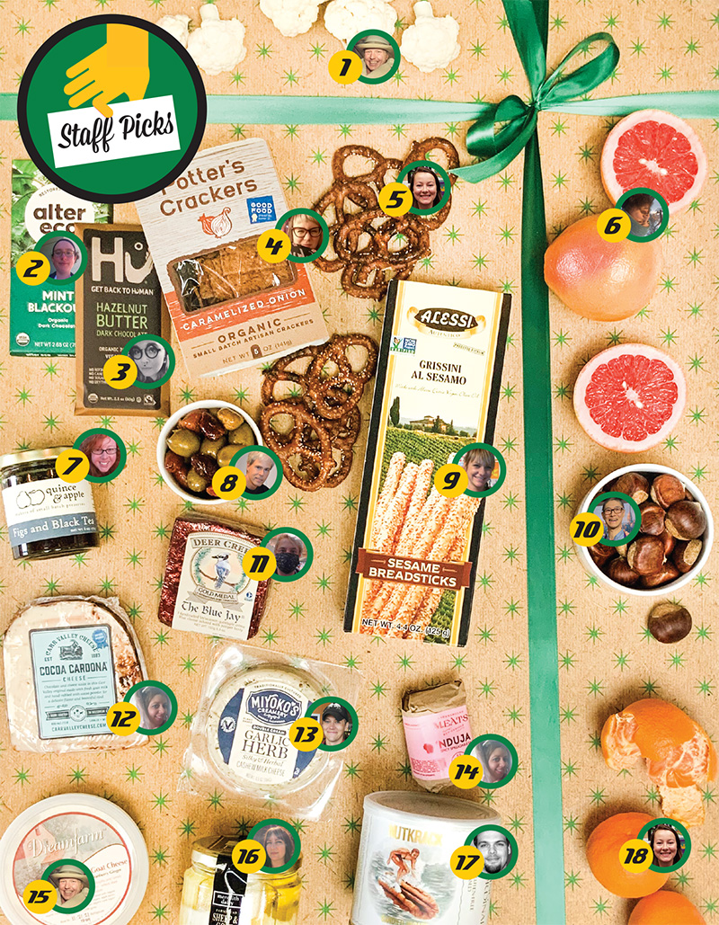 Potter’s Crackers Caramelized Onion Crackers If you’re looking for the perfect cracker for a cheese plate, this is the one! Potter’s Crackers are made with organic and locally sourced whole-wheat flour, milk, and butter in Madison, Wisconsin, and most of their produce also comes from small, local farms. This flavor goes with so many cheeses, but I recommend it with Dream Farm’s Farmstead Goat Cheese. – Lacey, Logistics.