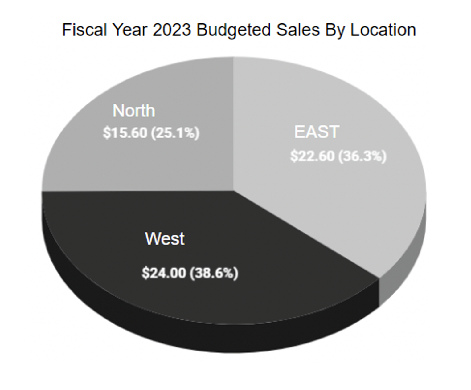 Total Sales. The FY23 sales projections for our Co-op include modest sales growth of just under 3% growth over FY22. We anticipate inflation along with a small increase in transactions to drive sales growth. We are projecting 38.6% of our sales to be from our Middleton location, 36.3% from our East location, and 25.1% from our North location.