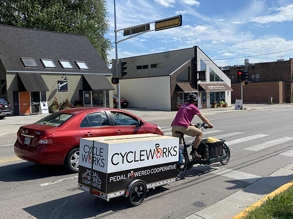Madison CycleWorks (MCW) is a start-up bicycle delivery cooperative that is forming partnerships with local businesses to offer a bike delivery option for the businesses’ products. With grant funding, MCW expanded their cargo bike fleet by one bike that is dedicated to making sustainable bike-powered deliveries. This new cooperative delivered 789 packages and continues to make deliveries twice a week, with an average of 25 packages per week. These deliveries saved 379 car miles! MCW is now focusing on sustaining current delivery contracts and preparing for expansion during the next warm season. In the future, MCW plans to explore the option of a pedicab for human transport service as well.