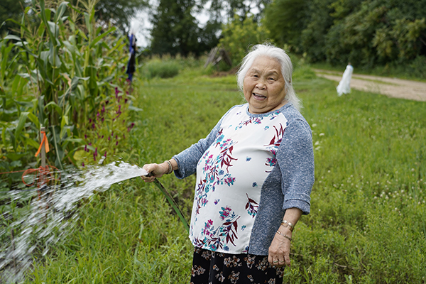 Groundswell Conservancy undertook a project to provide access to gardening to HMoob (Hmong) elders living with PTSD, depression, and dementia. The gardening skills learned by many HMoob elders as children are resistant to memory loss and dementia, and gardening as a group reduces social isolation. Following the pilot project in 2021, Groundswell Conservancy responded to the HMoob elders’ request for water access near the therapy garden rather than hauling water from the well. With grant funding, they were able to install a water distribution system throughout the farm, add additional spigots, and relocate two spigots based on feedback from the elders and market growers. Now there are water spigots accessible at every quarter acre of production land. The elders and the rest of the growers no longer need to drive to the wellhead to carry water back to their growing areas. One HMood elder said, “The Therapy Garden brings happiness to our lives and every year, improvements have been made to extend our happiness and joy, which prolongs our lives in a space that we are able to connect with. We don’t want very much. We want to grow food, to be happy, and we want to matter in the community[…] Water nourishes the plants that will blossom into food that will nourish our bodies. Please tell all kind and loving souls that we appreciate them from the bottom of our hearts.” (In photo above: Xao Cha watered her vegetables with a garden hose as soon as the spigots were installed and ready for use.)