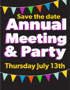Save the Date! Annual Meeting & Party - Thursday July 13th