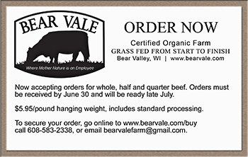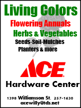 newspaper ad for Bear Vale, Certified Organic Farm in Bear Valley, Wisconsin. www.bearvale.com newspaper ad for Madison Waldorf School. Kindergarten. A great place to be a child. madisonwaldorf.org newspaper ad for ACE Hardware Center on Willy Street. Living Colors, Flowering Annuals, Herbs & Vegetables, Seeds, Soil, Mulches, Planters & More
