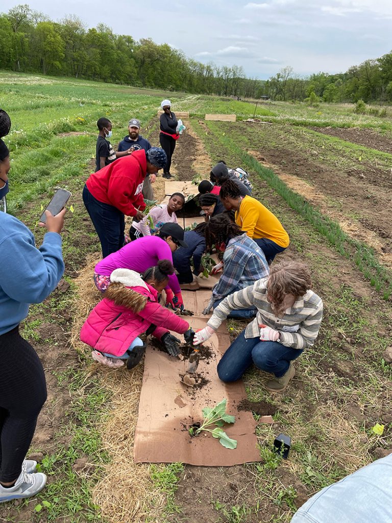 The Farley Center also supports community involvement in local food systems by offering educational tours of their farm and using the space to support local artists and farmers simultaneously by hosting collaborative events throughout the year. At the close of their first season at the Farley Center, Urban Triage threw a celebratory Harvest Festival that is now held annually in September. This festival is for all community members to come to the farm and celebrate the land we work on and the history of Black and Indigenous people in agriculture. The festival offers soul food, a land blessing and acknowledgment, and hosts local dancers, singers, acrobats, and many other artists in a celebration of the land and our continued stewardship of it.