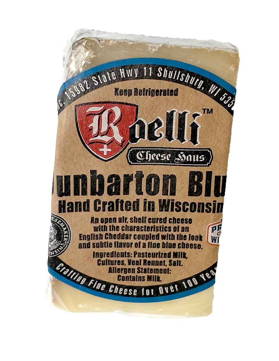 Aged cheddar and blue cheeses both have strong flavors, but the Roelli Dunbarton combines the two to make something truly unique.