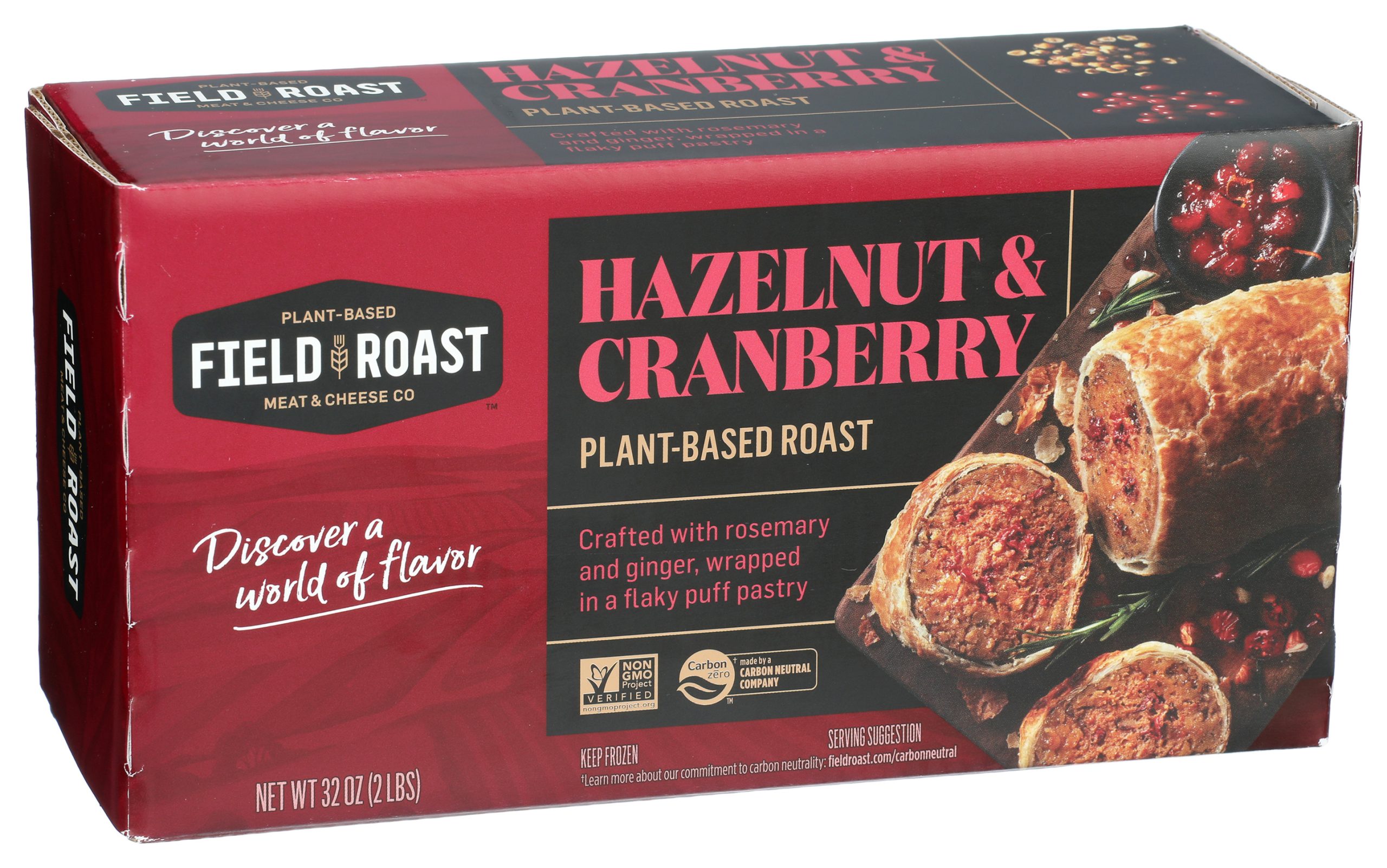 - Hazelnut Cranberry Plant-Based Roast. With eight servings, this larger roast features a rich blend of hazelnuts, sweet candied ginger, and aromatic rosemary, all seasoned to perfection and encased in a delicious flaky puff pastry.