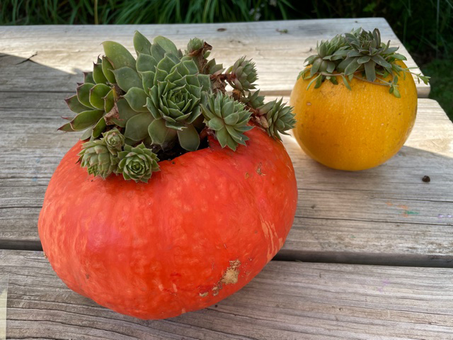 - When the pumpkins begin to look not-so-fresh, dig a hole in your garden or raised beds. Your edibles and ornamentals can be planted while still in the pumpkin directly into the soil and will live on in the ground. The pumpkin will provide nutrients for your plants and—better still—nothing will be wasted!