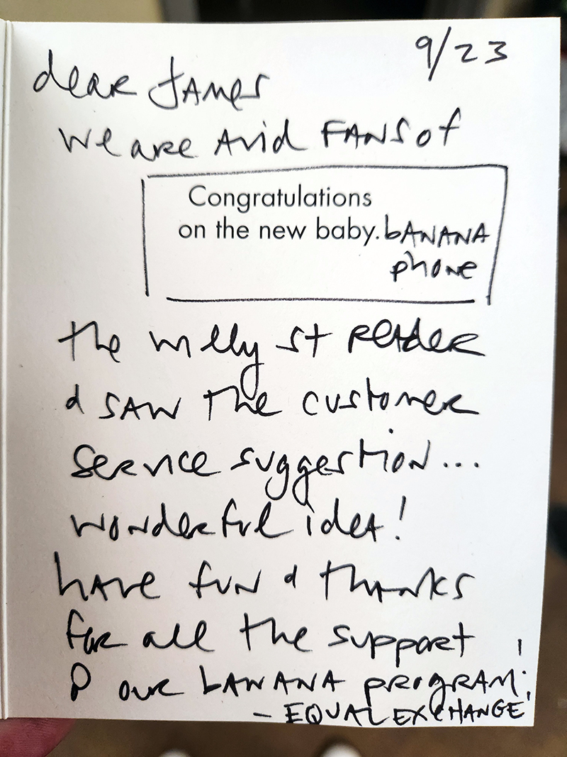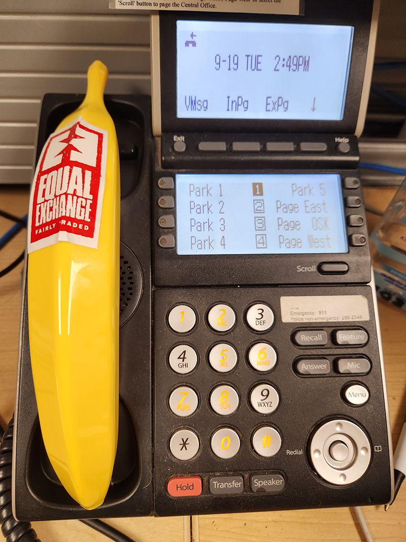 After our friends at Equal Exchange read the customer comment suggesting that Willy East customer service use a banana phone, they sent one!