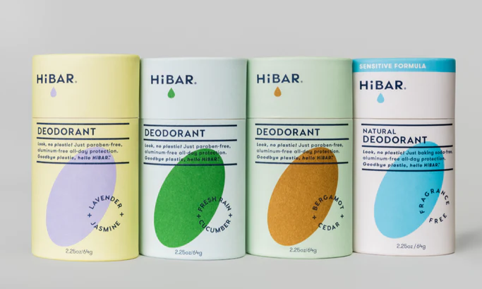 This new deodorant from HiBar comes wrapped in a 100% plastic-free, recyclable or compostable cardboard tube. Choose from three naturally scented varieties, or a fragrance and baking soda-free sensitive formula. All are aluminum- and paraben-free. Available at all stores.