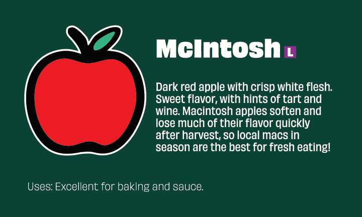September is the beginning of local apple season at Willy Street Co-op! This year, we’ll be sourcing certified organic apples from Atoms to Apples in Mt. Horeb, and maybe some apples from the McGuire family at Blue Roof Orchard in Belmont. Ela Orchard in Rochester and Barnard Farms in Sturgeon Bay will provide us with their local apples grown using sustainable, integrated pest management practices.