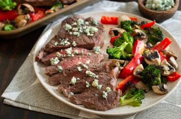 Sheet Pan Steak with Blue Cheese and Broccoli