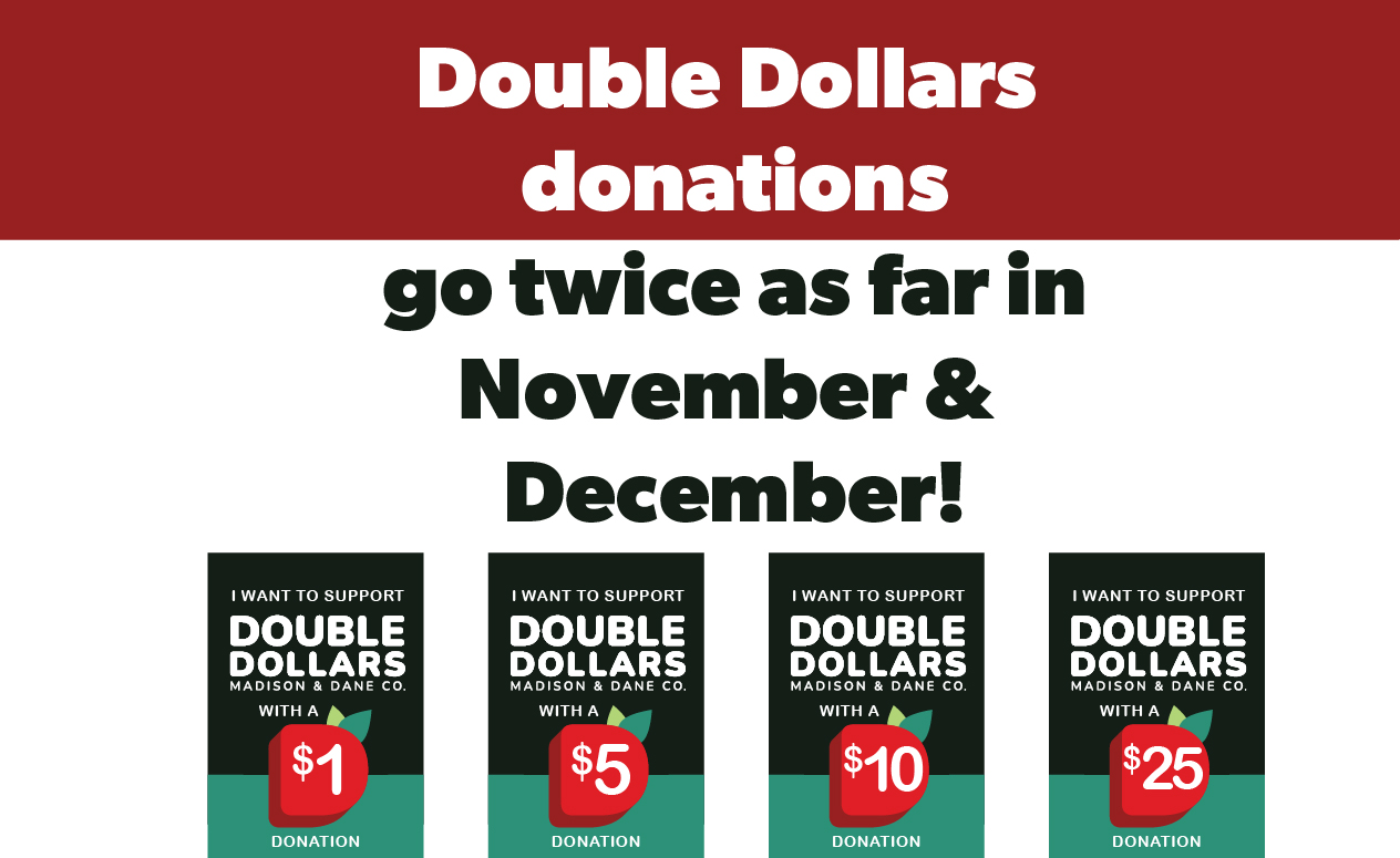 Through December 31st, when you use a Double Dollars scan card, the Co-op will match up to $10,000 and donate matched funds to our five food pantry partners: