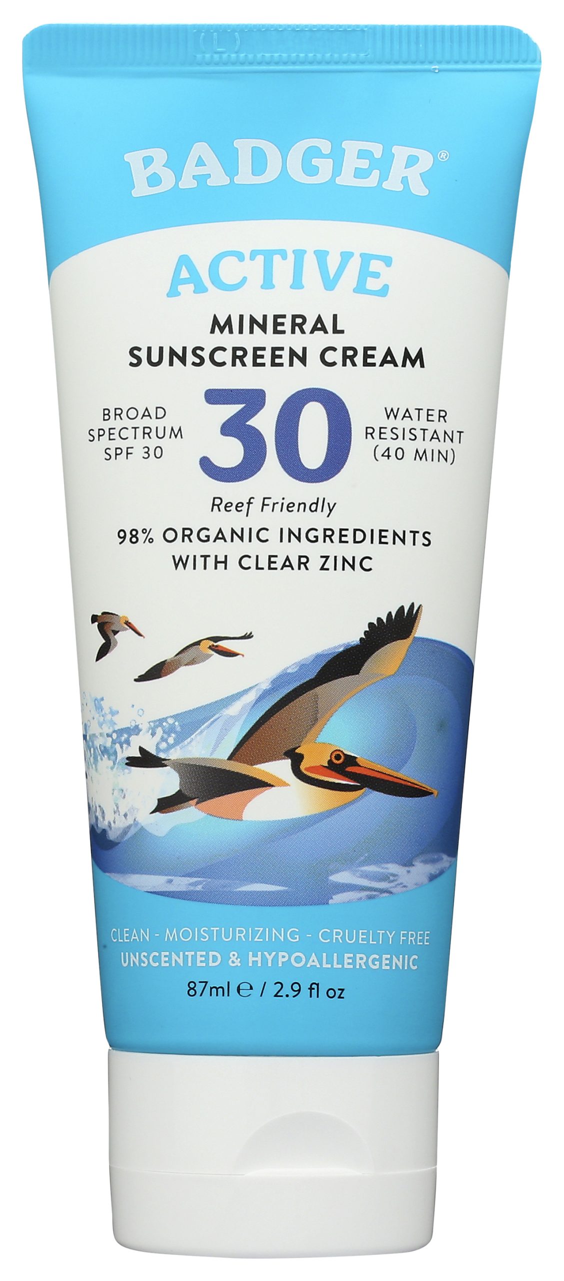 Badger Broad Spectrum SPF 30 Active Mineral Sunscreen, Unscented | ||||||||