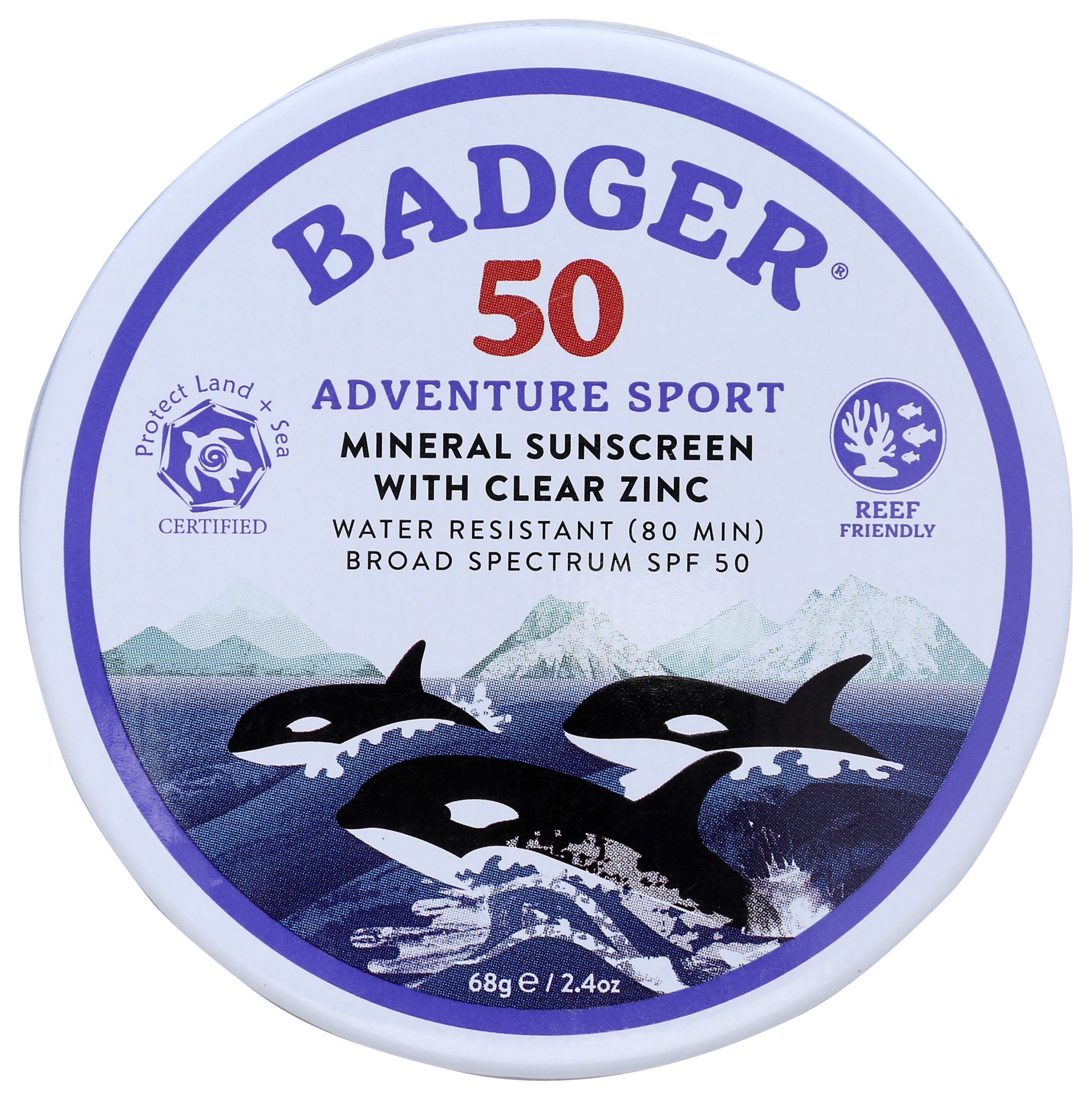 Badger Broad Spectrum SPF 50 Adventure Sport Mineral Sunscreen, Unscented | ||||||||