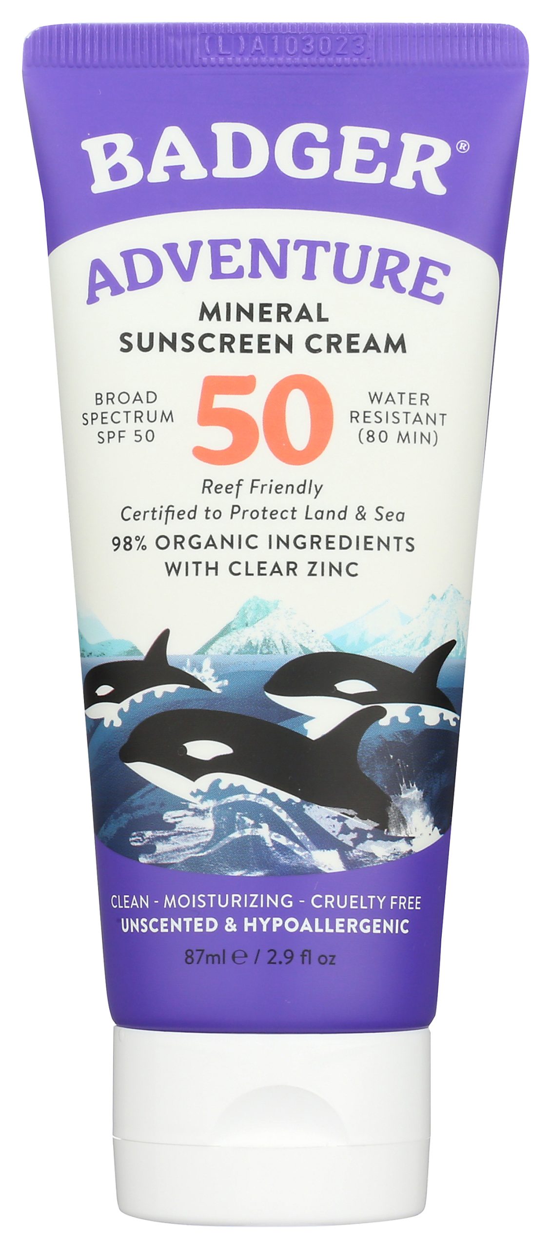 Badger Broad Spectrum SPF 50 Adventure Mineral Sunscreen, Unscented | ||||||||