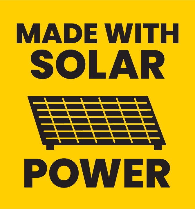 Made with Solar Power: The energy used to make this product comes from the sun.